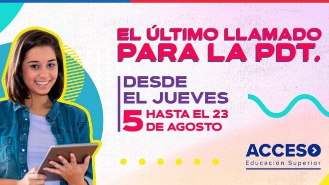 Luego de que más de 200 mil jóvenes ya se inscribieran para rendir la Prueba de Transición (PDT), el nuevo Sistema de Acceso a la Educación Superior abrió hoy un nuevo y último Periodo Extraordinario de Inscripción en el portal acceso.mineduc.cl, que se extenderá hasta el lunes 23 de agosto, a las 13:00 horas. En él, tanto los estudiantes de IV Medio como los alumnos de generaciones anteriores que quieran postular a las 45 universidades adscritas al Sistema podrán registrarse, para así rendir las pruebas durante la semana del 6 de diciembre.