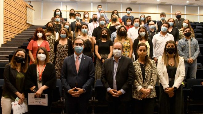 El ministro de Educación, Raúl Figueroa, junto a Francisco Guijón, Director Ejecutivo de TVN, entregaron un reconocimiento a los profesores y al equipo detrás de Aprendo TV, programa del Mineduc que ha permitido que más de 100 mil niños entre 4 y 12 años reciban a diario televisión educativa con contenidos alineados con el currículum priorizado.