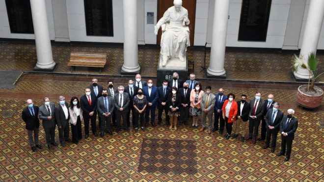 El secretario de Estado, en conjunto con la subsecretaria Verónica Figueroa Huencho, llegaron hasta la Casa Central de la Universidad de Chile para dialogar y escuchar a las rectoras y rectores, con el objetivo de avanzar en una agenda conjunta. “Hemos hecho un llamado para construir en conjunto los grandes debates que nos van a convocar en estos cuatro años. Y hemos explicado y compartido cuáles son los lineamientos programáticos que nos convocan, principalmente el fortalecimiento de la educación pública gratuita y de calidad”, detalló la subsecretaria Figueroa Huencho.
